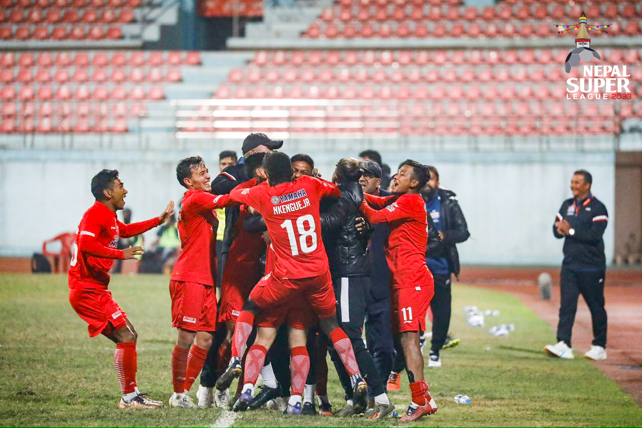 काठमाडौंको जितमा जुनियर एनकेन्गुइले ८२ मिनेट र शोखरुखले दोस्रो हाफको इन्जुरी टाइममा गोल गरे।