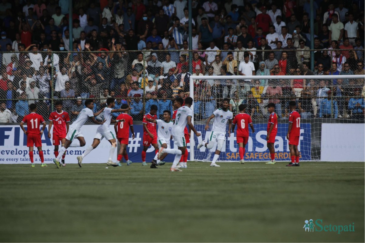 साफ यू-२० च्याम्पियनसिप २०२४ को उपाधिका लागि आयोजक नेपाल र बंगलादेशबीच प्रतिस्पर्धा भइरहेको छ।