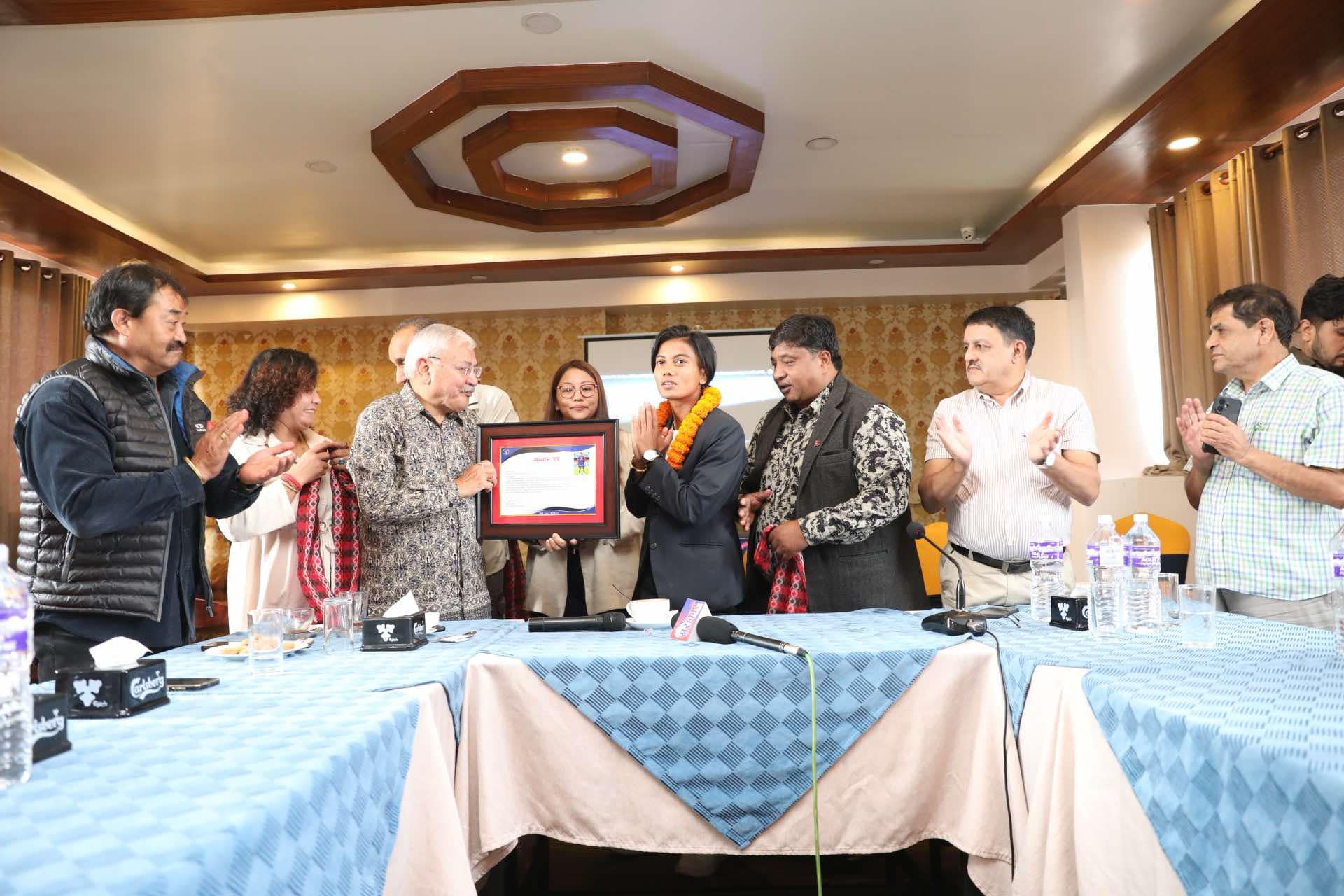 नेपाली महिला राष्ट्रिय टोलीकी मिडफिल्डर अमिषा कार्कीलाई नगदसहित सम्मान गरिएको छ।