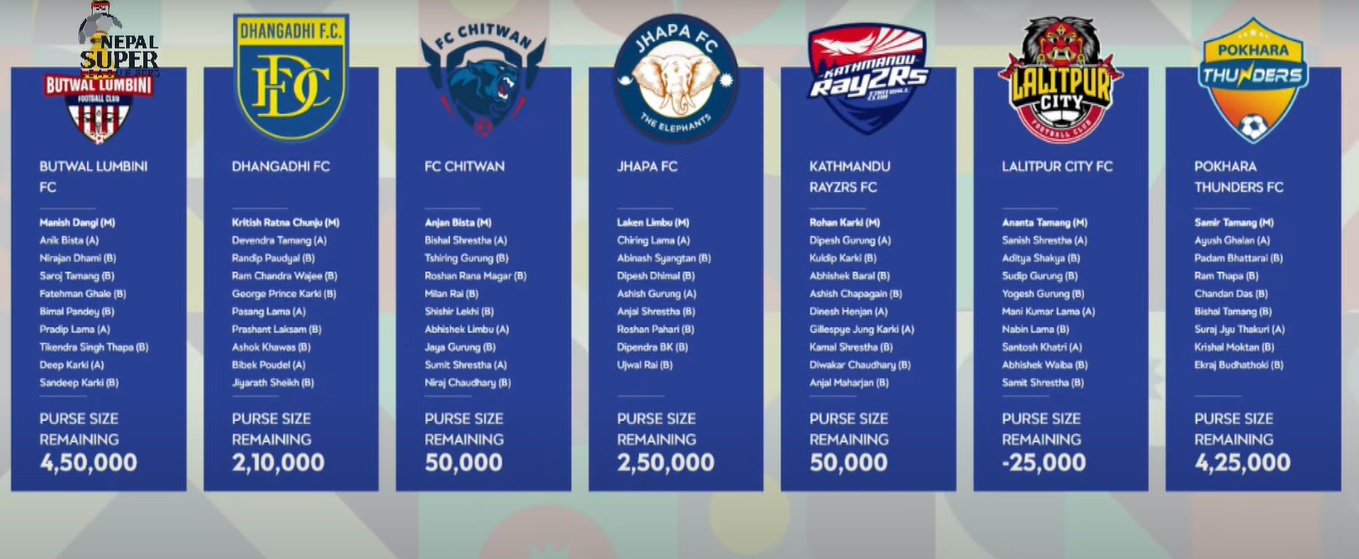 यी खेलाडीका लागि सात टोलीले बोली लगाएका थिए। जसमा ए श्रेणीका आठ खेलाडीले अधिकतम ४ लाख रुपैयाँ पाएका छन्। जसमा पासाङ लामा, दिनेश हेन्जन, मणिकुमार लामा, आशिष गुरुङ, अभिषेक लिम्बू, सुमित श्रेष्ठ, जिलेस्पीजंग कार्की र सन्तोष खत्री अधिकतम ४ लाखमा बिक्री भएका हुन्।