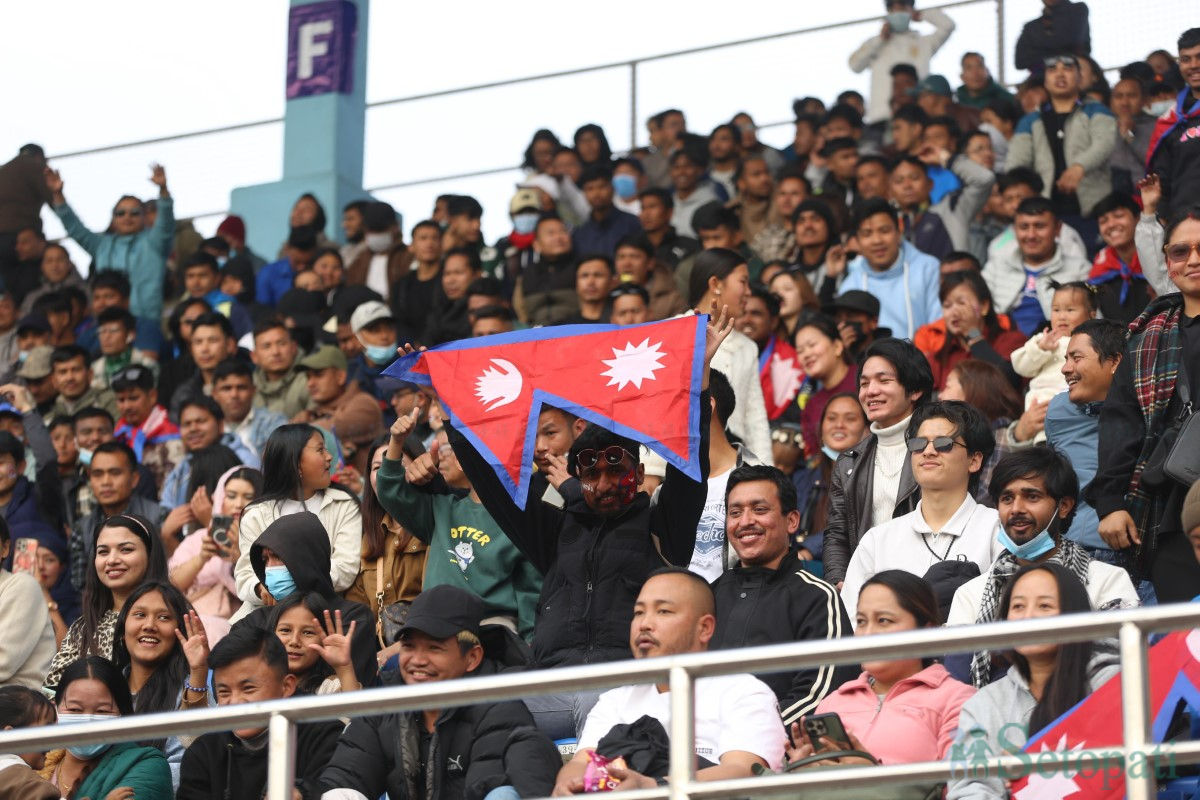 इन्टरनेशनल वुमन्स च्याम्पियनसिपको उपाधिका लागि घरेलु टोली नेपाल र म्यानमारबीच आज हुन लागेको खेल हेर्नका लागि दशरथ रंगशालामा दर्शकहरू भरिभराउ छन्।