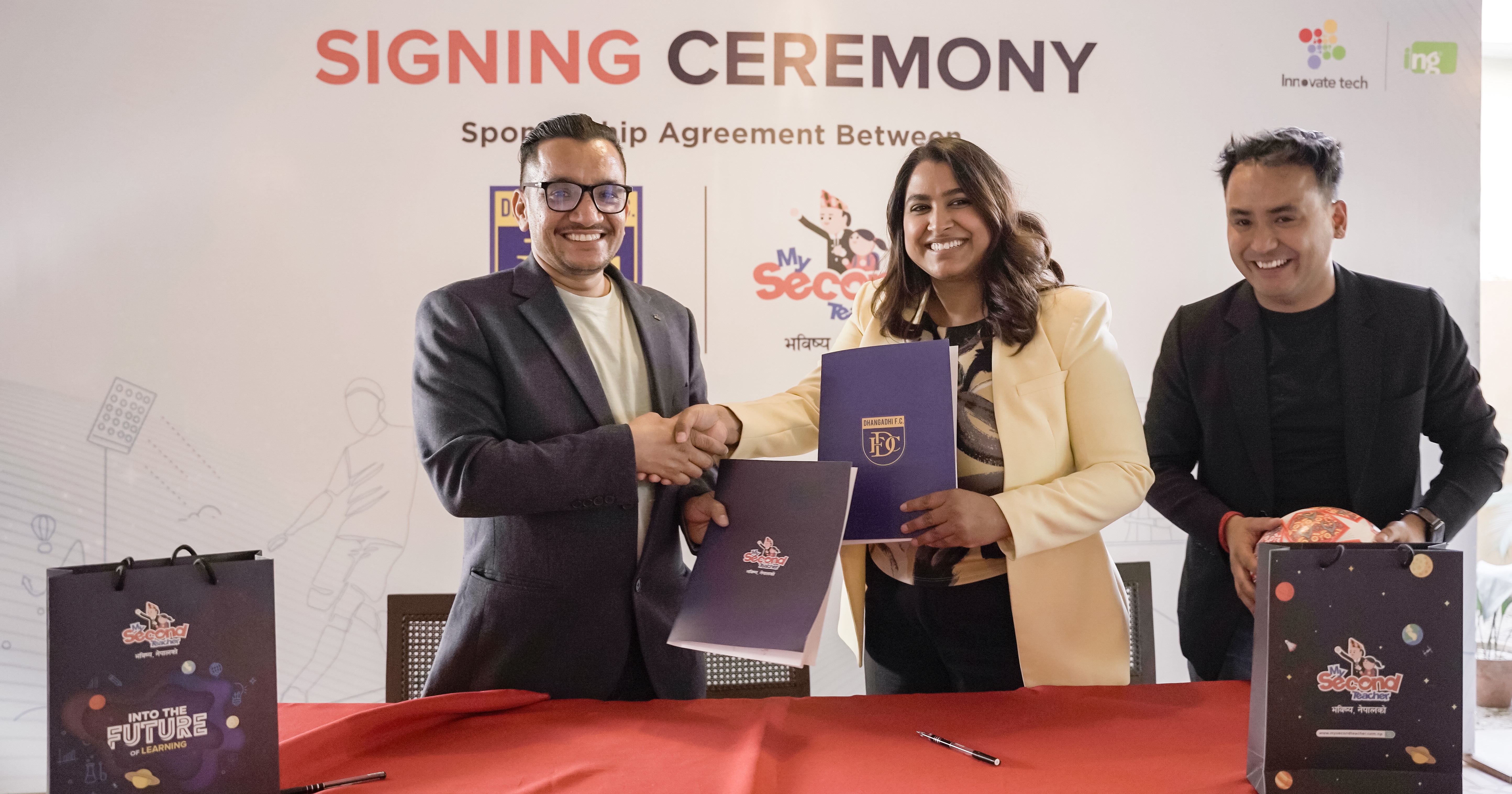 सम्झौतामा माई सेकेन्ड टिचर नेपालकी प्रमुख मेधा भट्टराई र धनगढी एफसीका अध्यक्ष सुवास शाहीले हस्ताक्षर गरे। यस प्रायोजनमार्फत माईसेकेन्ड टिचर नेपालले शिक्षा र खेलकुदलाई सशक्त रूपमा जोड्ने लक्ष्य राखेको छ।