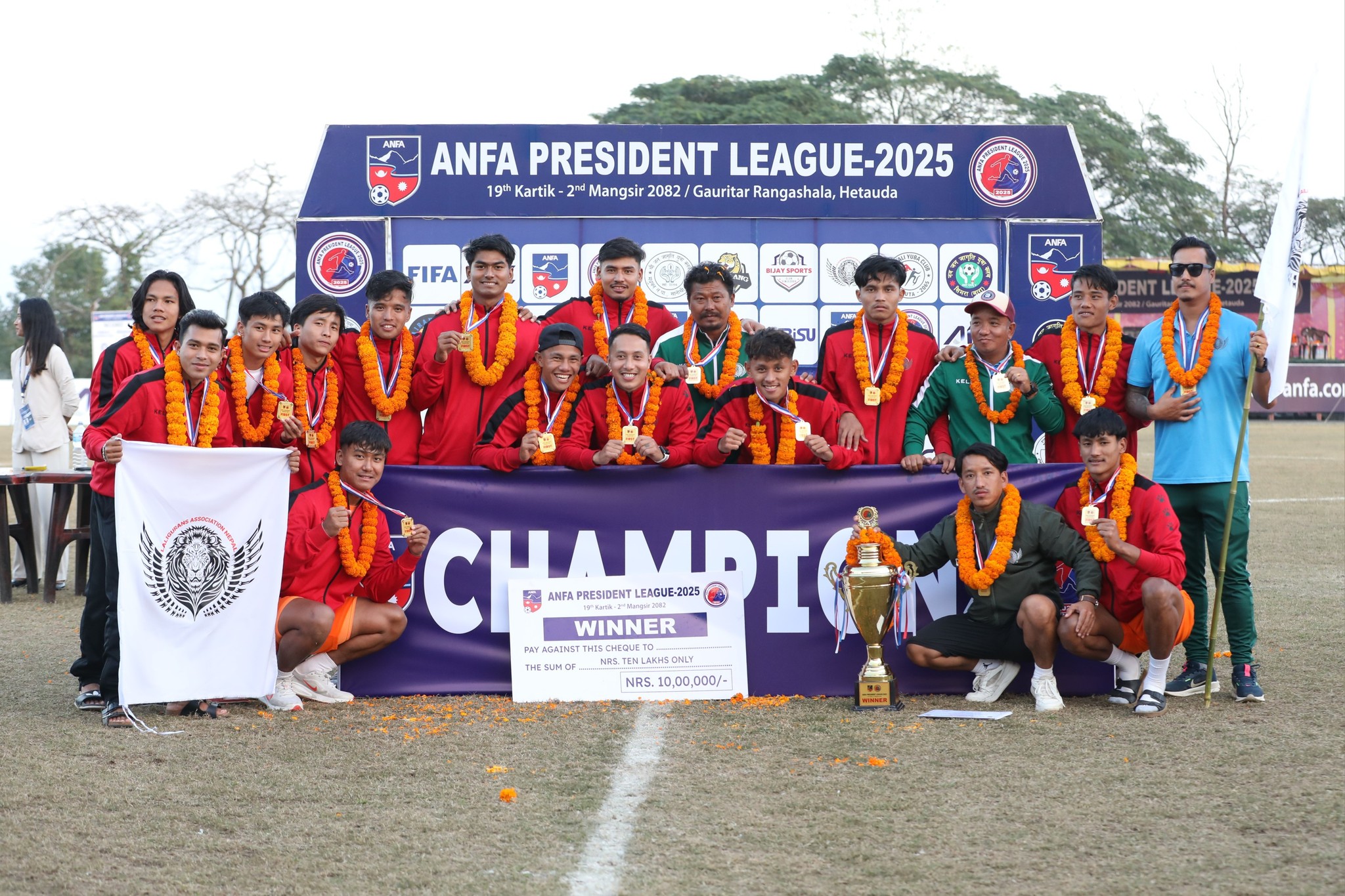 कास्कीको लालीगुराँस एसोसिएसन क्लबले एन्फा प्रेसिडेन्ट लिगको उपाधि जितेको छ।