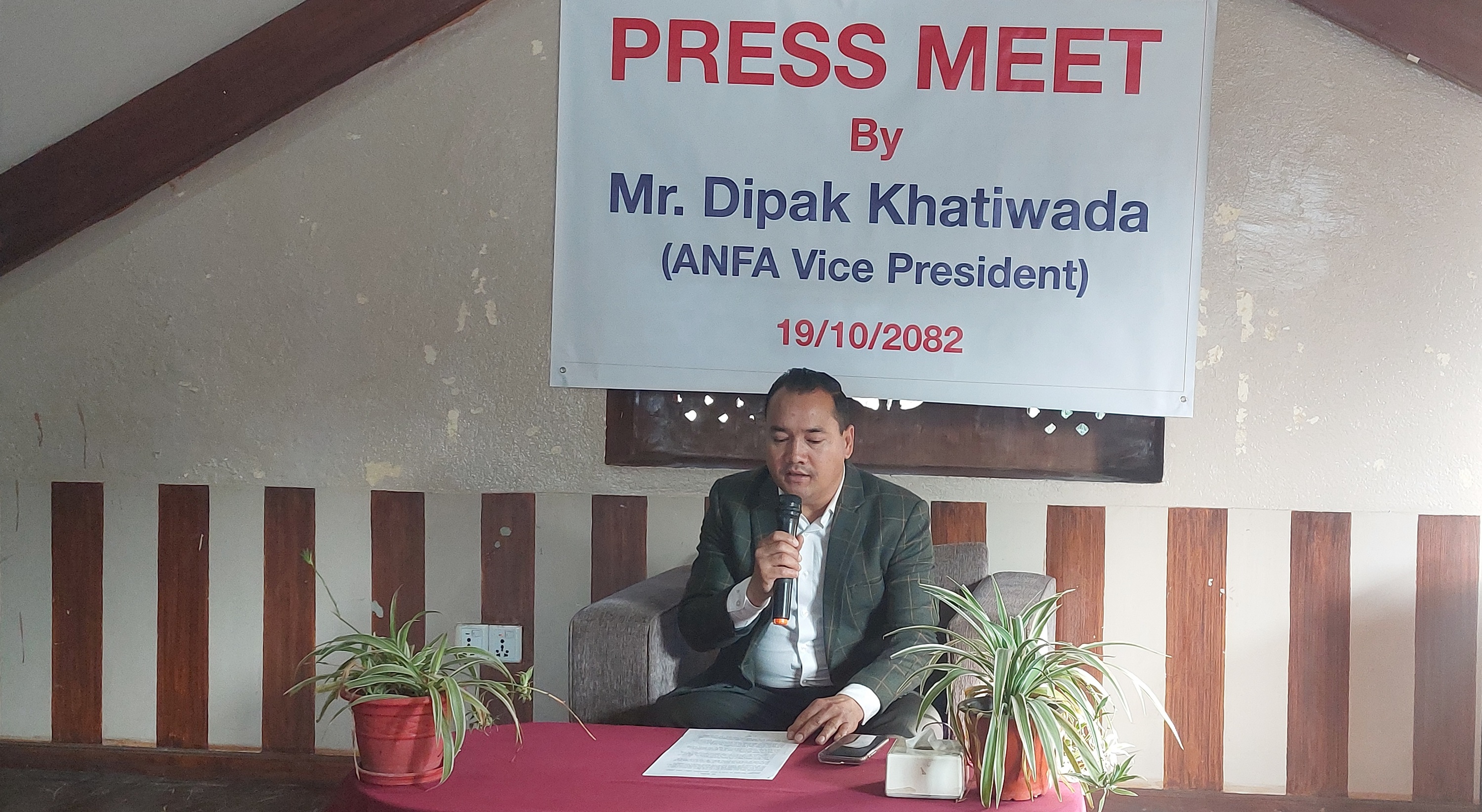 सोमबार ललितपुरमा पत्रकार सम्मेलन गर्दै उनले एन्फाको अहिलेको निर्वाचन प्रक्रिया विधान सम्मत नभएको भन्दै उम्मेदवारी लिने घोषणा गरेका हुन्।