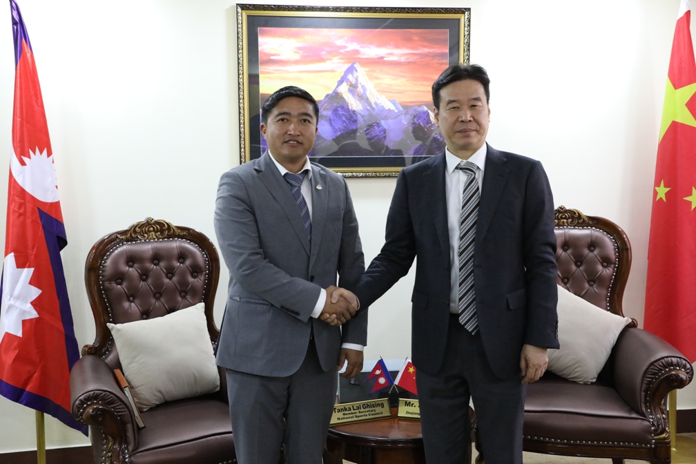राष्ट्रिय खेलकुद परिषद् (राखेप) का सदस्य–सचिव टंकलाल घिसिङले झेजियाङ खेलकुद ब्युरो, चीनका निर्देशक एवं १९ औं एसियाली खेलकुद आयोजक कमिटीका उप–सचिव झेङ याउसंगको भेटमा सुरुआतमा केही निश्चित खेलबाट सहकार्य गर्न चाहेको बताएका छन्।
