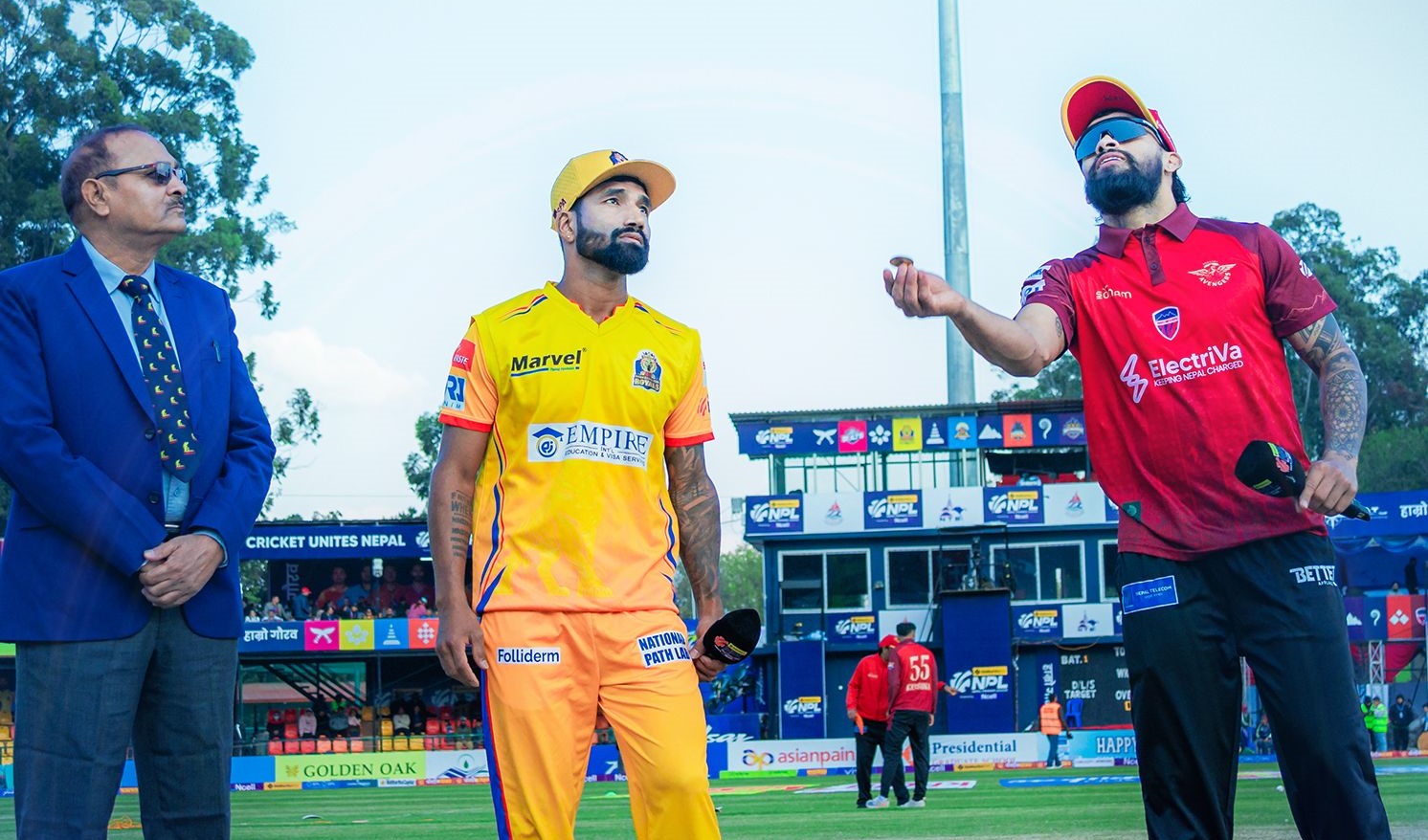 सिद्धार्थ बैंक नेपाल प्रिमियर लिग (एनपिएल) अन्तर्गत शुक्रबारको खेलमा पोखरा एभेन्जर्सले सुदूरपश्चिम रोयल्सविरूद्ध टस जितेको छ।