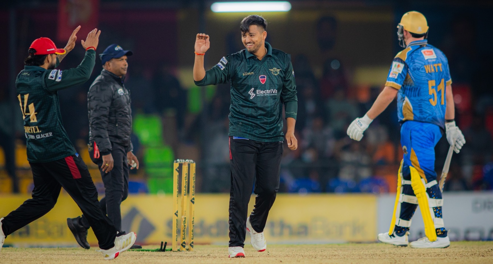 कप्तान सोमपाल कामी १३ रन बनाएर आउट भएसँगै कर्णालीको आशा सकियो।