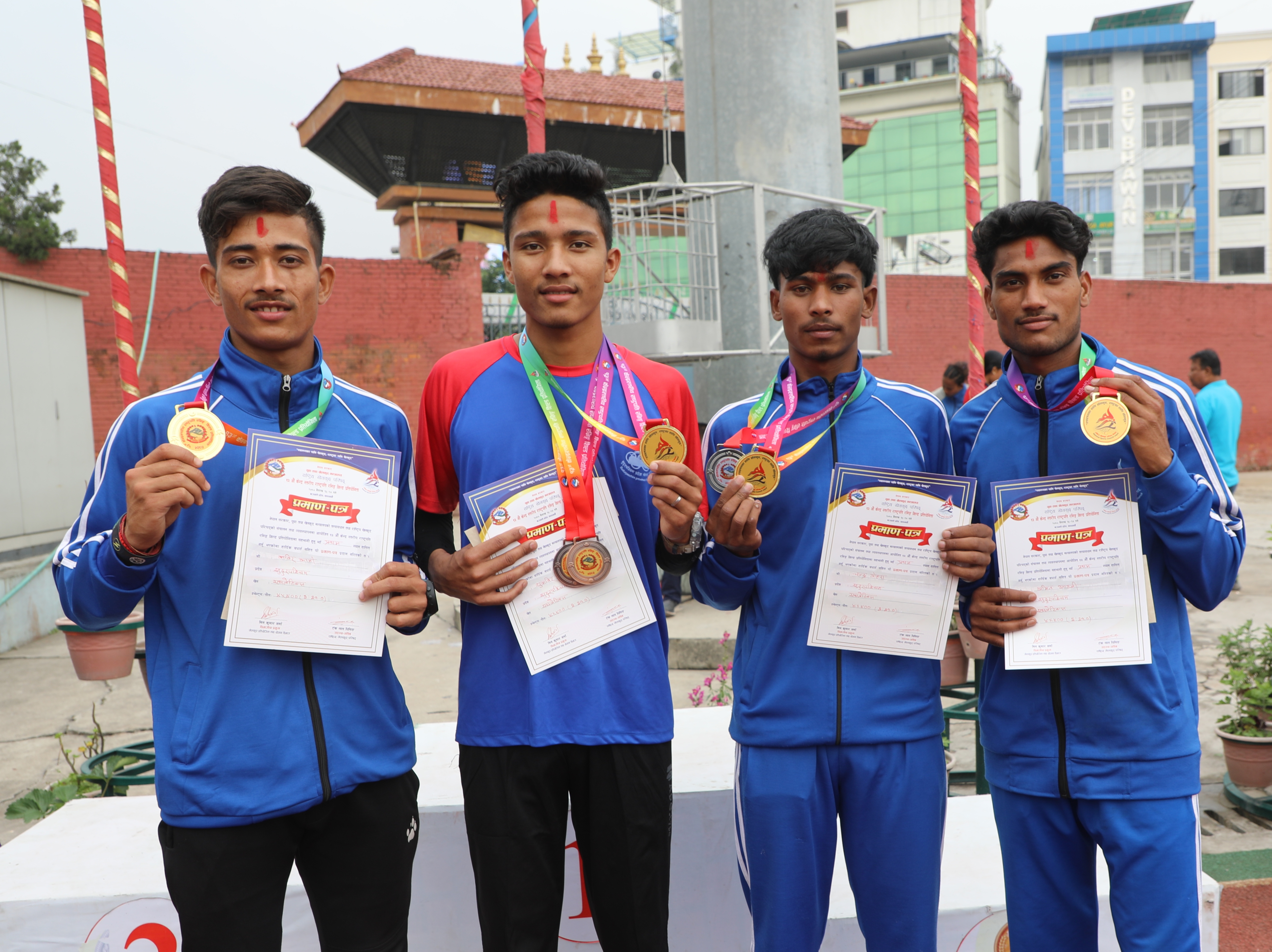 छात्रा ४ गुणा ४ सय मिटर रिलेमा लुम्बिनीले स्वर्ण, सुदूरपश्चिमले रजत तथा कर्णालीले कांस्य पदक जिते।