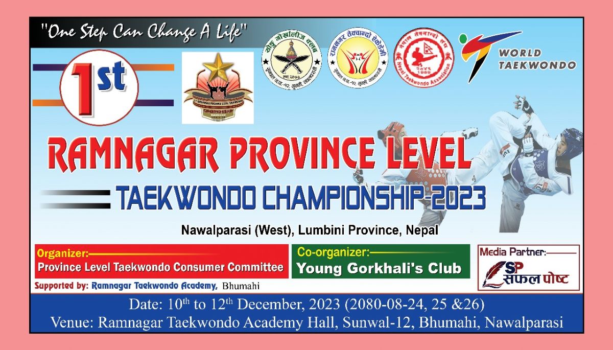 प्रदेश स्तरीय तेक्वान्दो समितिको र योंग गोर्खालीज् क्लबको आयोजनामा आगामी मसिर २४ गतेदेखि भुमहीमा प्रथम रामनगर प्रदेशस्तरीय तेक्वान्दो प्रतियोगिता हुने लागेको हो।