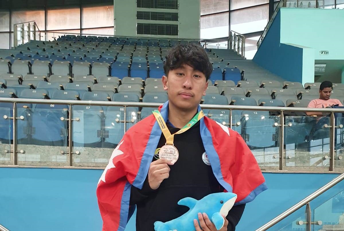 नेपालका खेलाडी तेन्जीन नामडोल रायन गुरुङ्गले भारतको नयाँ दिल्लीमा जारी बिम्स्टेक एक्वाटिक्स च्याम्पियनसिपमा पदक प्राप्त गर्न सफल भएका छन् ।