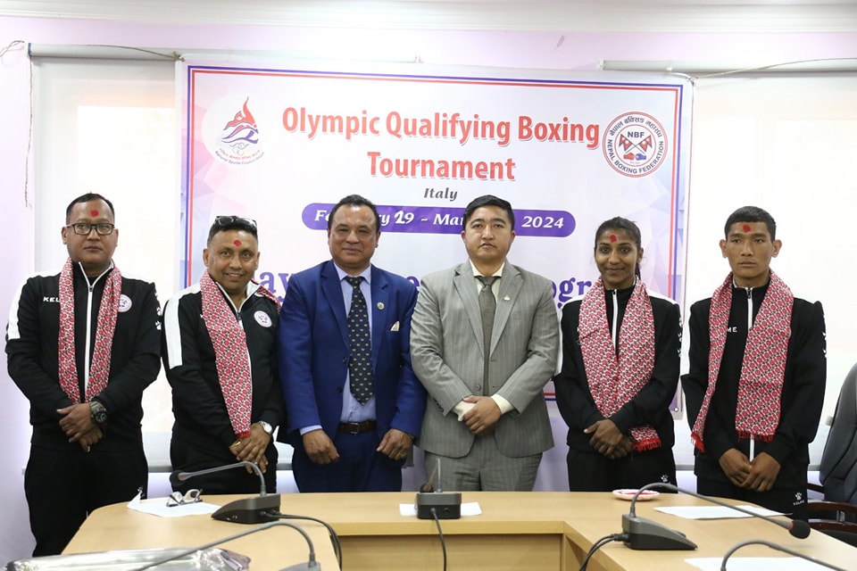 राष्ट्रिय खेलकुद परिषद्का सदस्य–सचिव टंकलाल घिसिङ, नेपाल बक्सिङ महासंघका अध्यक्ष राम अवाले, राष्ट्रिय टिम तयारीका निर्देशक दीपक विष्टलगायतले टोलीलाई सफलताको शुभकामना दिदै एक कार्यक्रमबीच बुधबार बिदाइ गरे ।