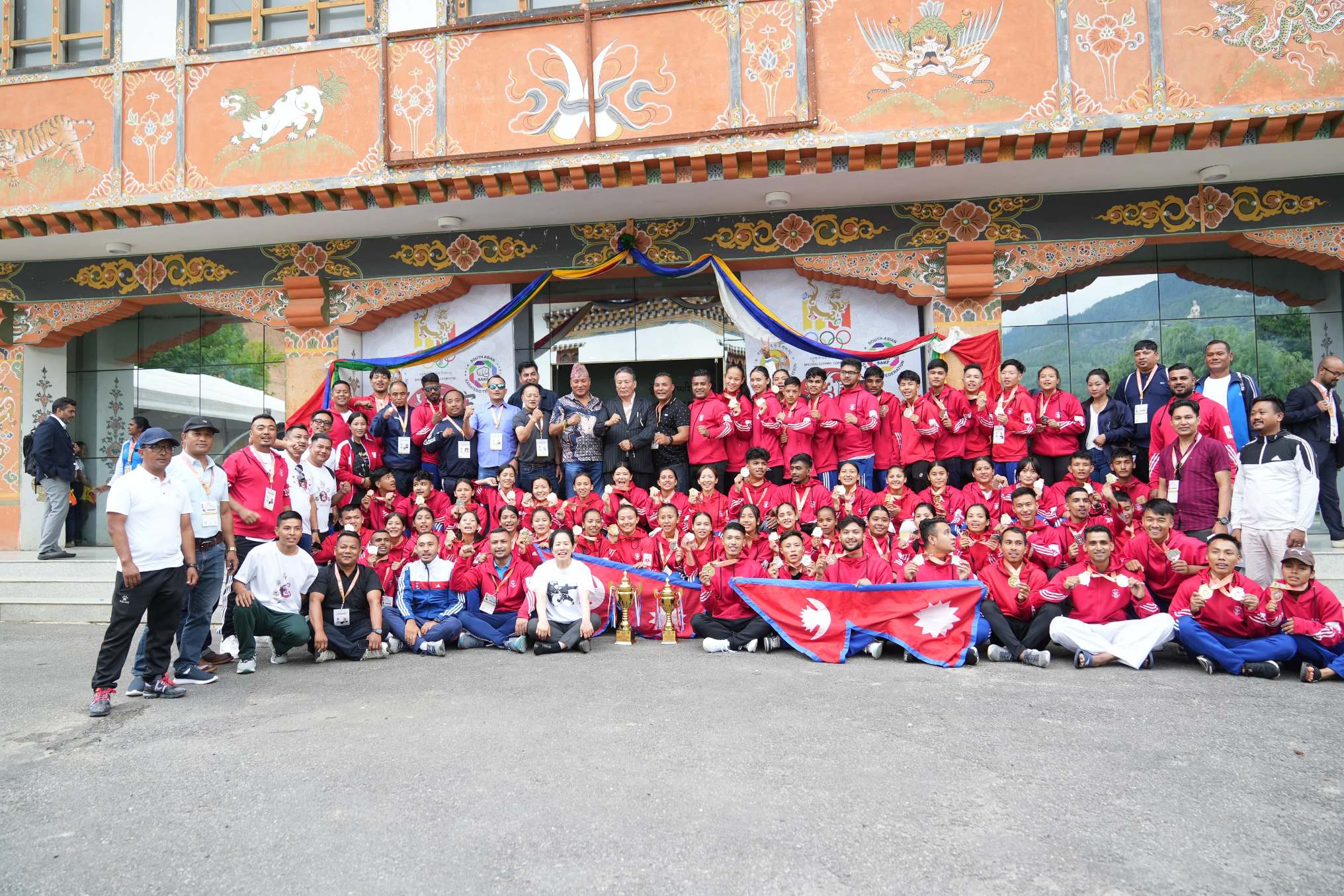 मित्र राष्ट्र भुटानको थिम्पुमा भएको ८ ओै साउथ एशियन कराते प्रतियोगितामा नेपाल ३१ स्वर्ण २० रजत र ११ कास्य सहित कुल ६२ पदक सहित टिम प्रथम भएको छ ।