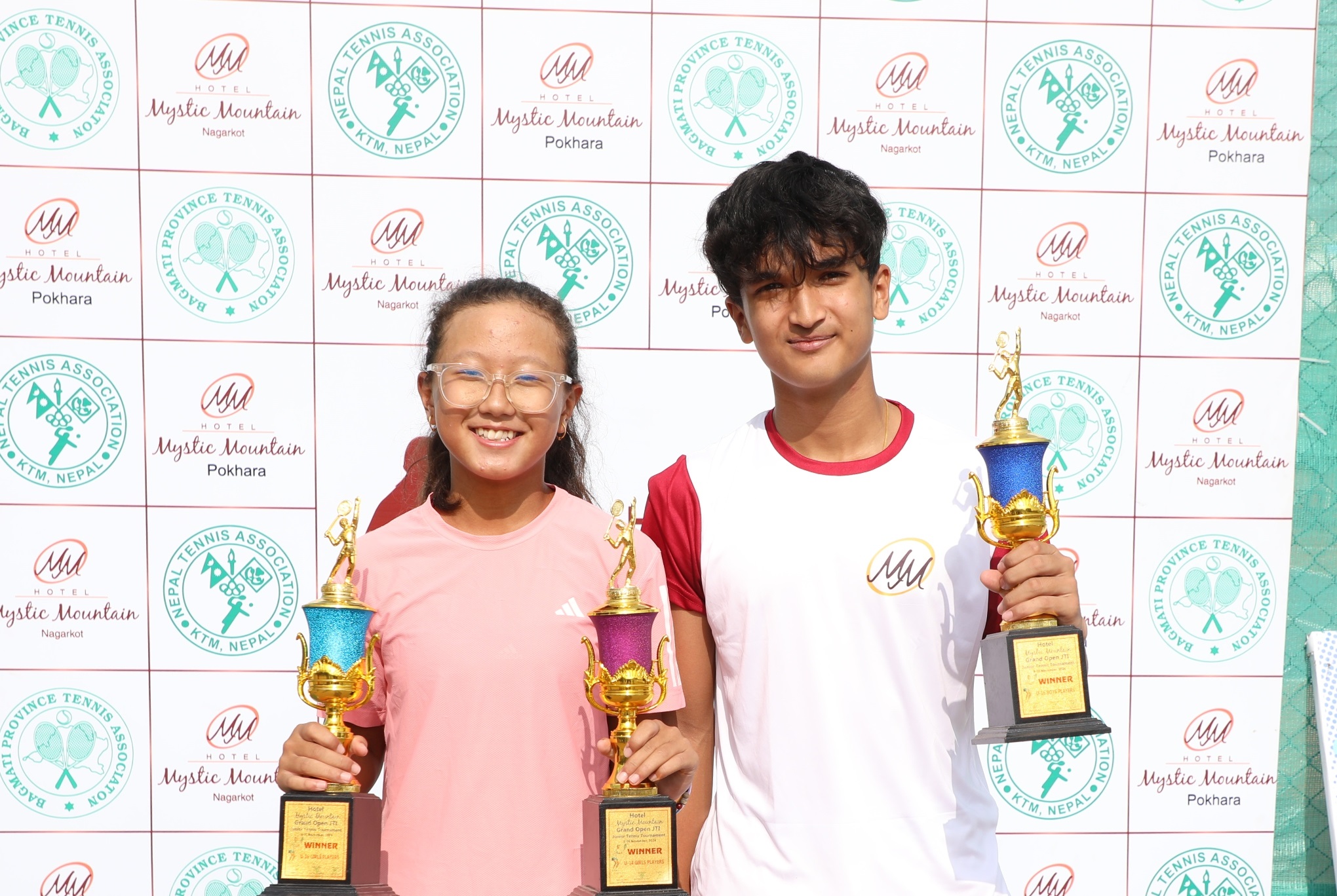 राजवीर प्रधान र शिभाली गुरुङ होटल मिस्टिक माउन्टेन ग्रान्ड खुला जेटीआई जुनियर टेनिस प्रतियोगिताको यु–१६ सिंगल्समा शनिबार पहिलो भएका छन् । राजवीर ब्वाइज तथा शिभाली गल्र्समा पहिलो भए ।