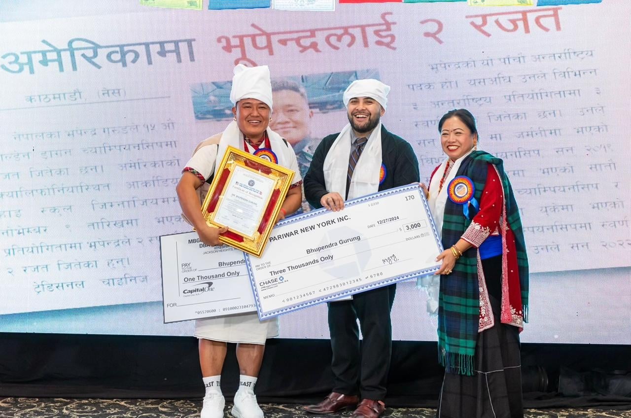 त्यस्तै ह्याप्पी किचन रेस्टुरेन्ट न्यूयोर्कका प्रोपाईटर वीरेन्द्र गुरुङले भूपेन्द्रलाई १ हजार युएस डलरसहित प्रशंसा पत्र प्रदान गरे।