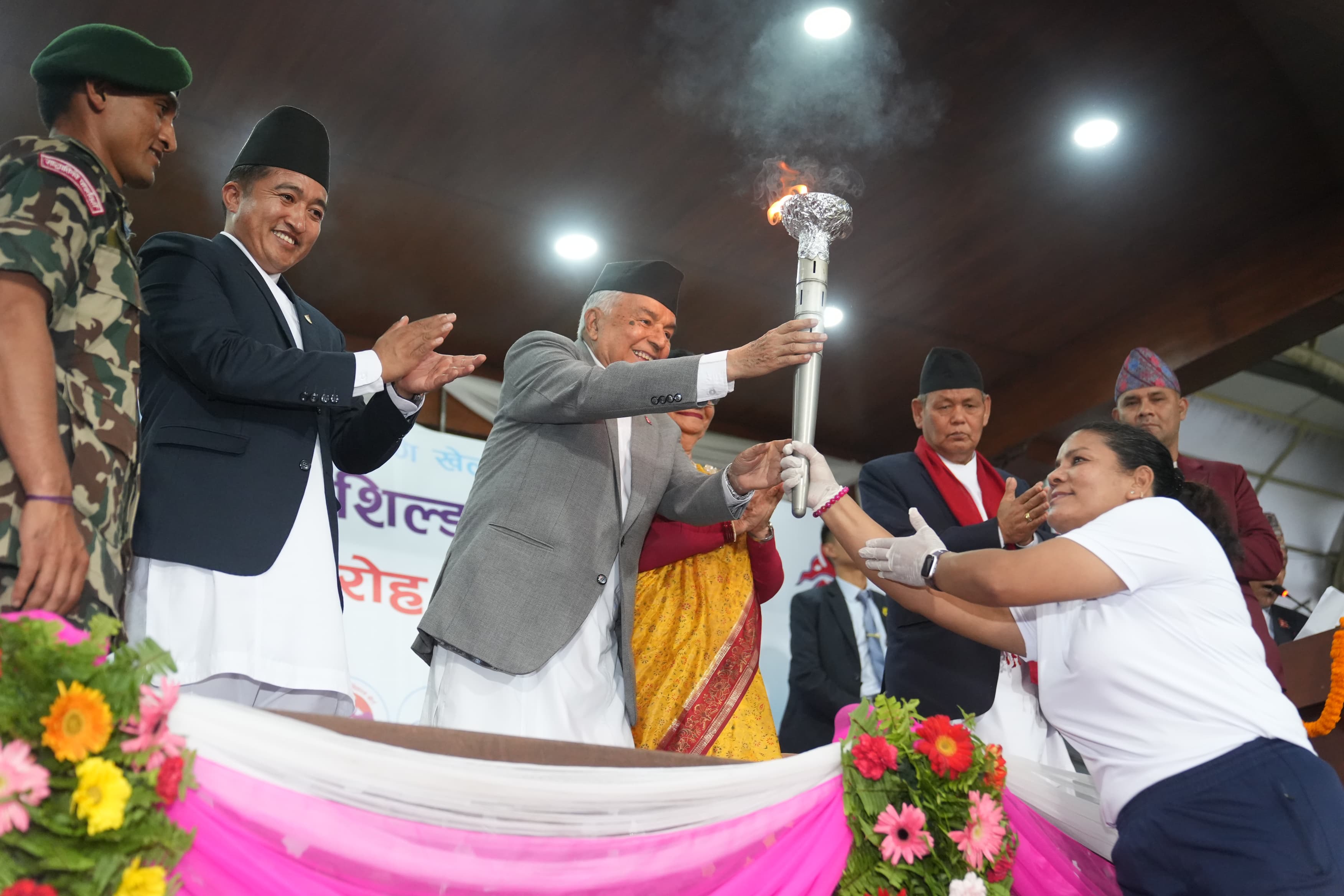 त्रिपुरेश्वरस्थित दशरथ रंगशालामा बुधबार विभिन्न कार्यक्रमसहित एक भव्य समारोहबीच राष्ट्रपति रामचन्द्र पौडेलले ओलम्पियन जुडोकी देवु थापालाई ओलम्पिक टर्च हस्तान्तरण गरी प्रतियोगिताको उद्घाटन गरे । त्यसपछि ओलम्पियन देवु, भारोत्तोलनका ओलम्पियन कमलबहादुर अधिकारी, ओललम्पियन एथलेटिक्सकी सरस्वती चौधरी र ओलम्पियन पारा तेक्वान्दोका भरतसिंह महताले ओलम्पिक टर्च पालैपालो ट्रयाकमा परिक्रमा गराएका थिए ।