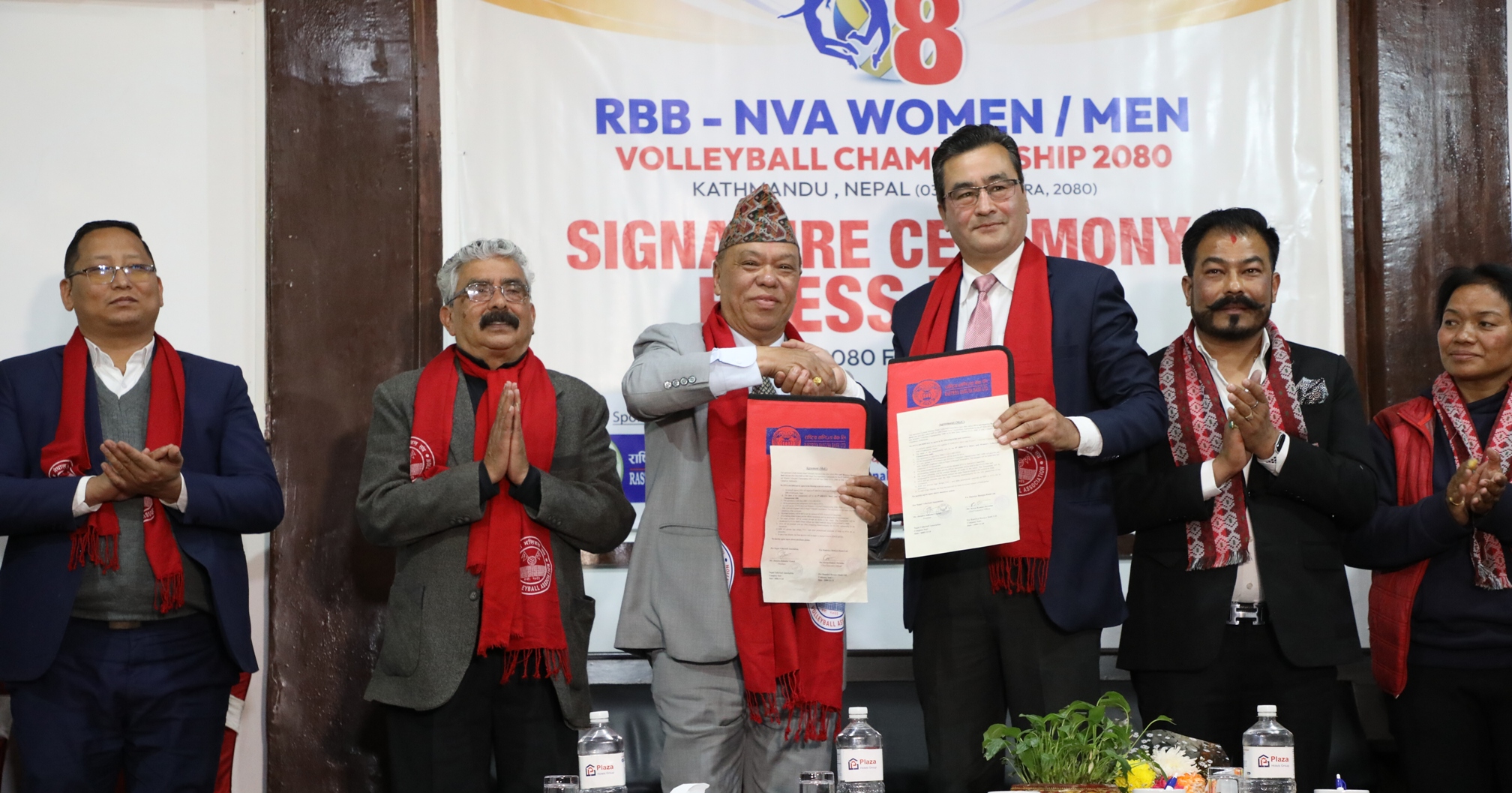 पत्रकार सम्मेलनमा मुख्य प्रायोजक राष्ट्रिय वाणिज्य बैंक र आयोजक भलिबल संघबीच सम्झौता पत्रमा हस्ताक्षर पनि भएको छ। बैंकका कार्यकारी प्रमुख किरणकुमार श्रेष्ठ र अध्यक्ष चन्दले सम्झौता पत्रमा हस्ताक्षर गरे । मुख्य प्रायोजनवापत बैंकले संघलाई १८ लाख रुपैयाँ दिने भएको छ। प्रतियोगितालाई बैंकले मुख्य प्रायोजन गरेको लगातार छैटौं वर्ष हो ।