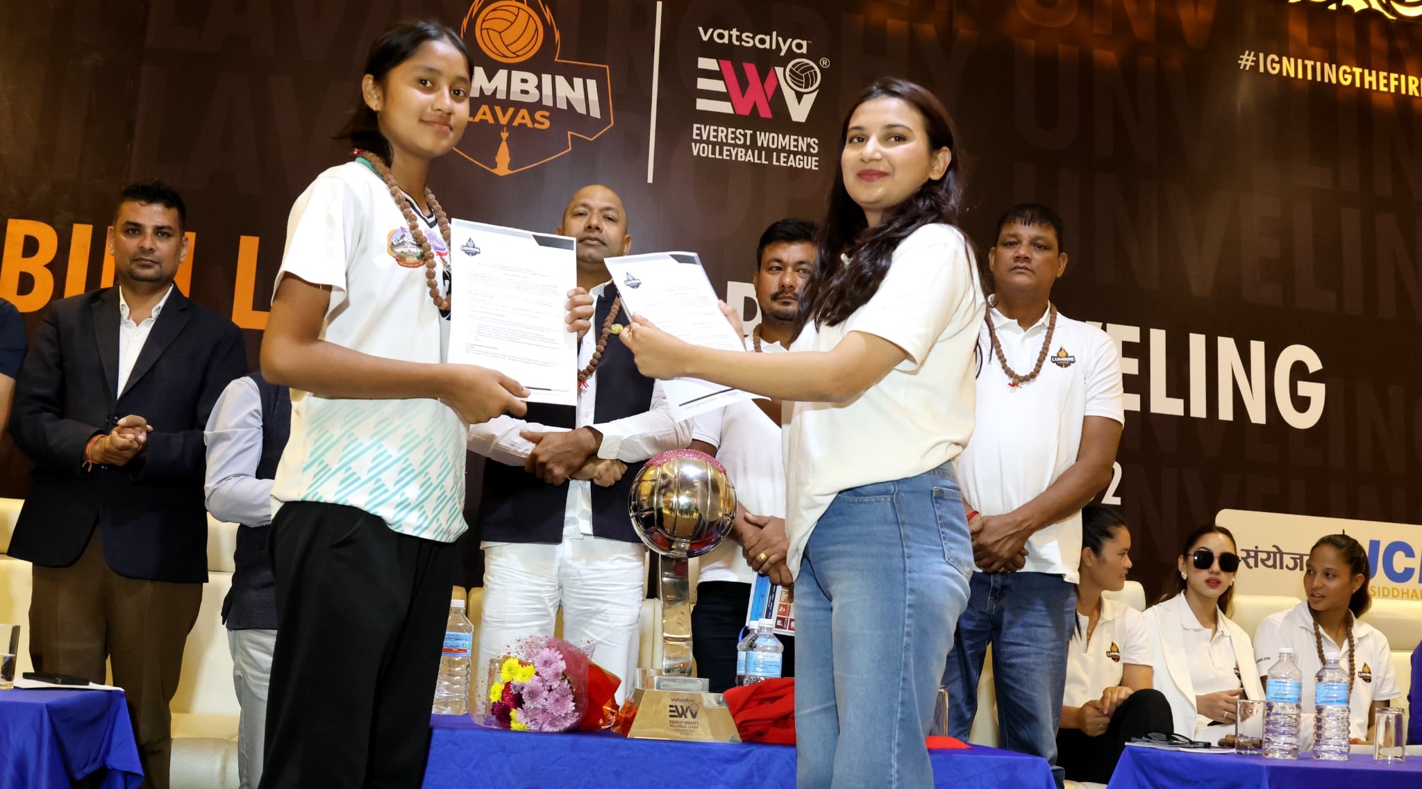 लुम्बिनी लाभाजले अक्सनमार्फत राष्ट्रिय महिला भलिवल टोलीकी कप्तान अरुण शाहीसहित कमला विष्ट, अलिसा मानन्धर, सान्तीकला तामाङ, अनुसा चौधरी, रोमा महतो, जेनिसा विश्वकर्मा र रिकजना माझीलाई अनुबन्धन गरेको छ।
